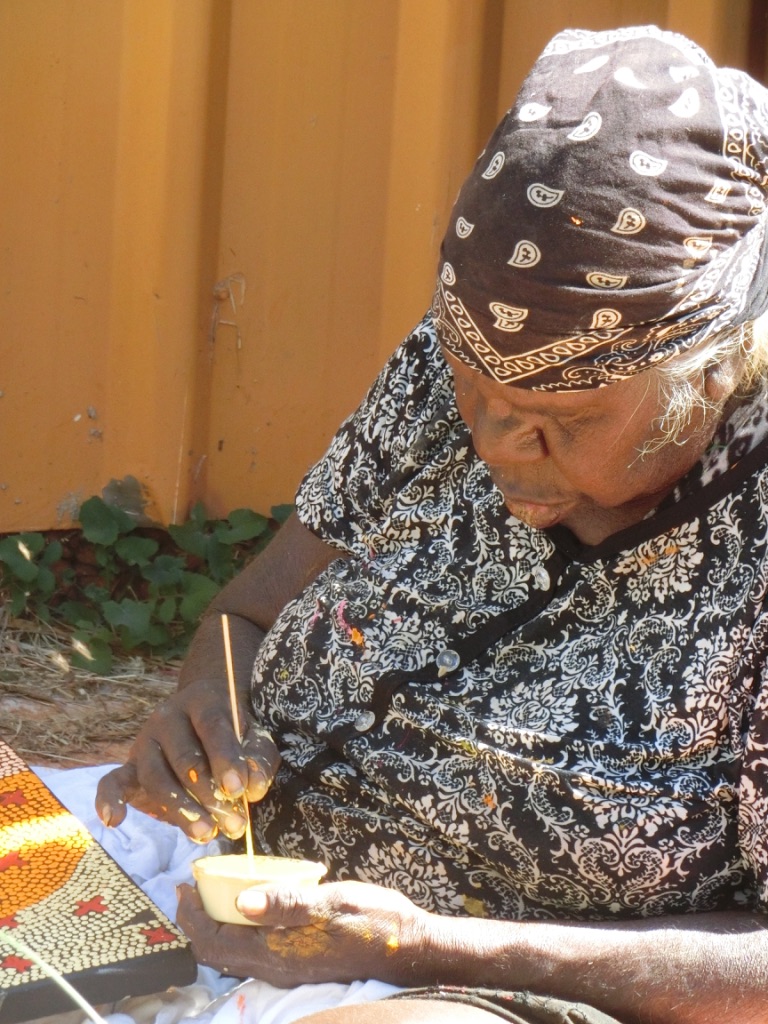 l’ambiance y est étonnante, surprenante… la timidité des ces artistes aborigènes est grande et ne facilite pas la parole, le dialogue…. mais je vous laisse découvrir les photos qui racontent cet univers …